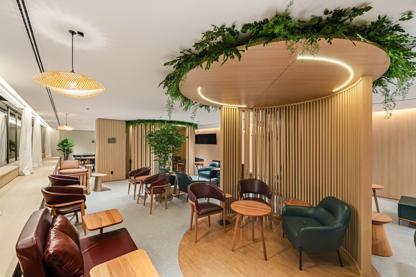 O Lounge VIP do Bradesco no Aeroporto de Guarulhos foi pensado como um espaço de refúgio e sofisticação em meio à agitação do maior aeroporto do país. Com 629m², o projeto proporciona conforto, fluidez e acolhimento por meio de materiais nobres, iluminação cênica e percursos intuitivos.