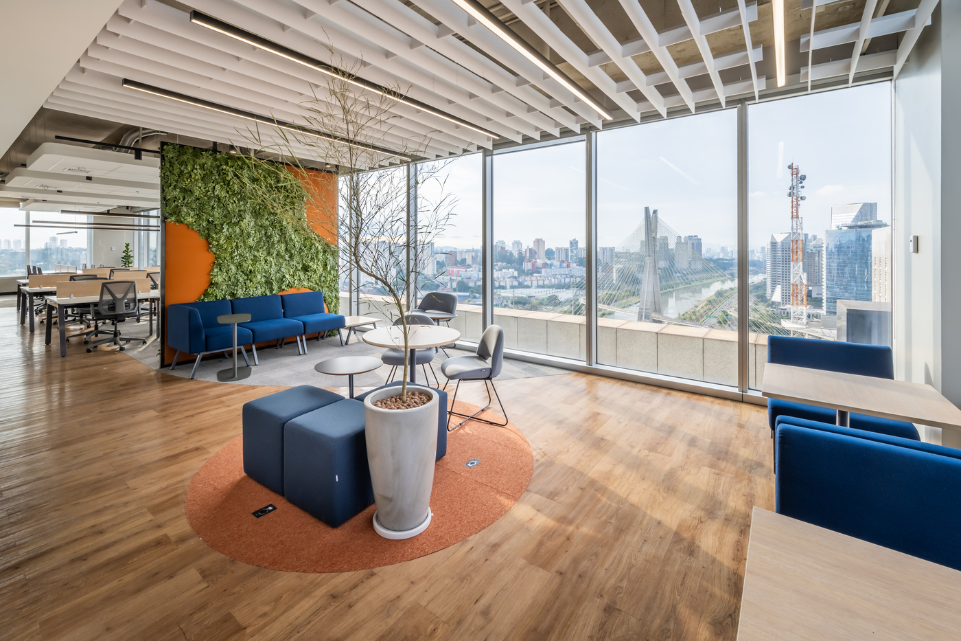 Localizado no icônico RiverView Tower, este projeto de 1650 m² para a Hines marca mais um capítulo de uma parceria sólida e crescente. Distribuído em três pavimentos, o novo escritório foi pensado para oferecer funcionalidade, conforto e uma vista privilegiada da cidade de São Paulo — um convite diário à inspiração. Com design contemporâneo e soluções que valorizam a experiência do usuário, o ambiente reforça a identidade da Hines e sua visão de futuro.